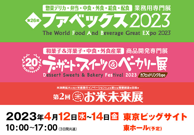 日本食糧新聞社主催の「第22回ファベックス2019」「第16回デザート・スイーツ&ベーカリー展」「第7回食品...