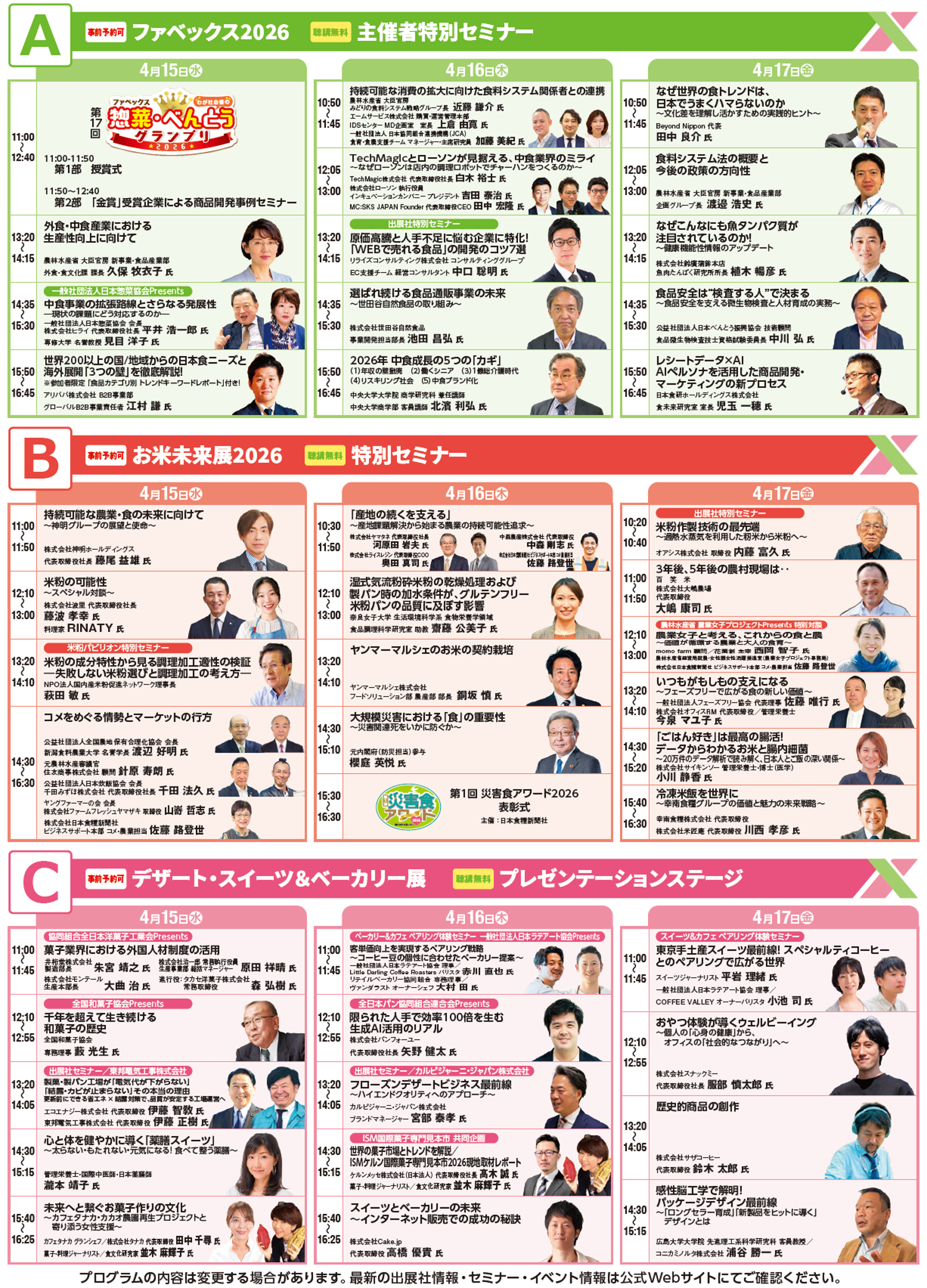 中食・外食・食品関係者が必見のテーマで開催いたします。