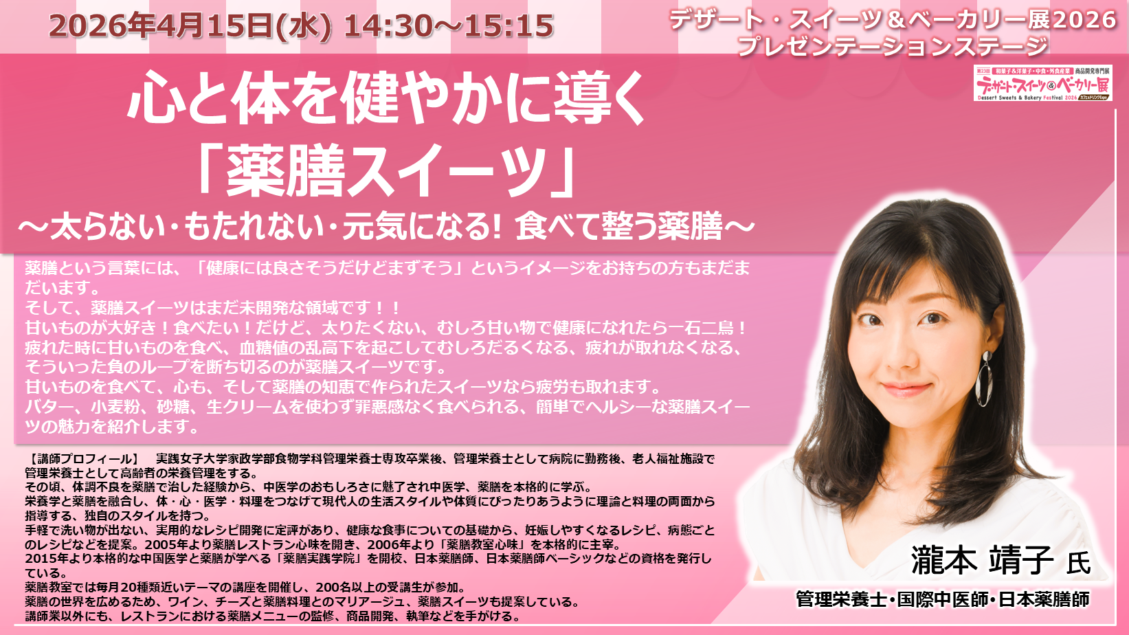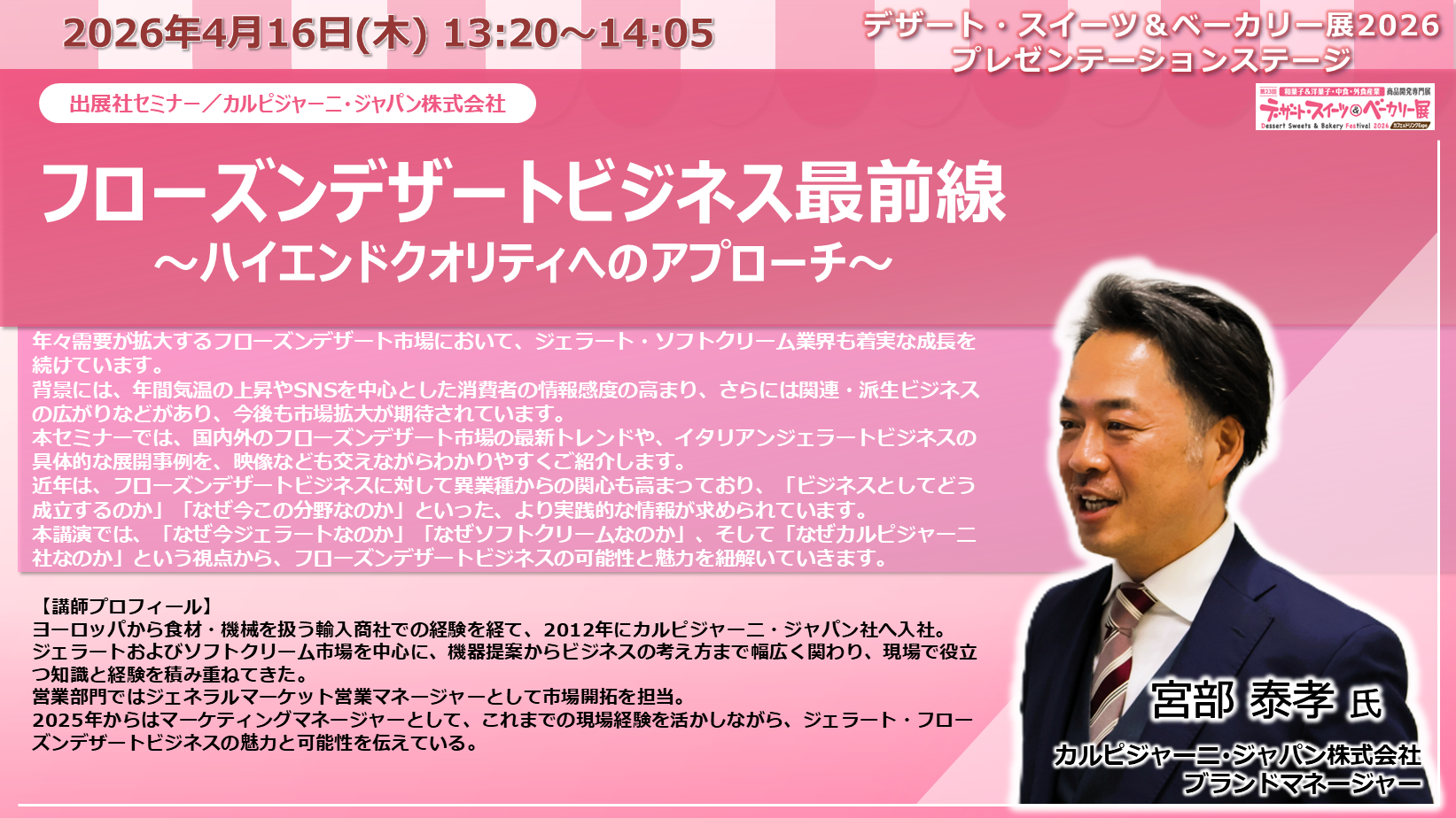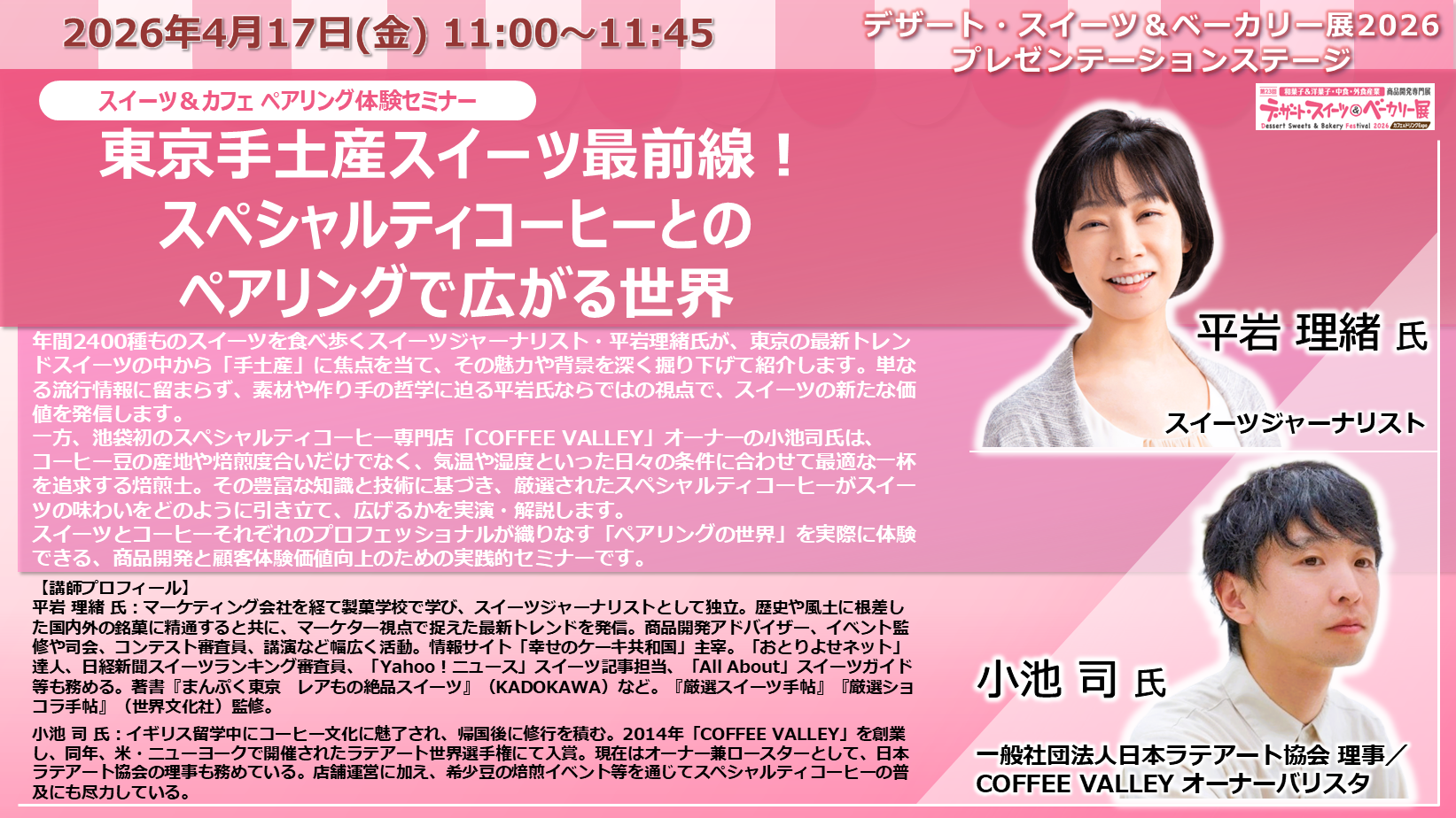 ◆「デザート・スイーツ&ベーカリー展 プレゼンテーションステージ」の講演内容と講師プロフィールをご紹介いたします◆