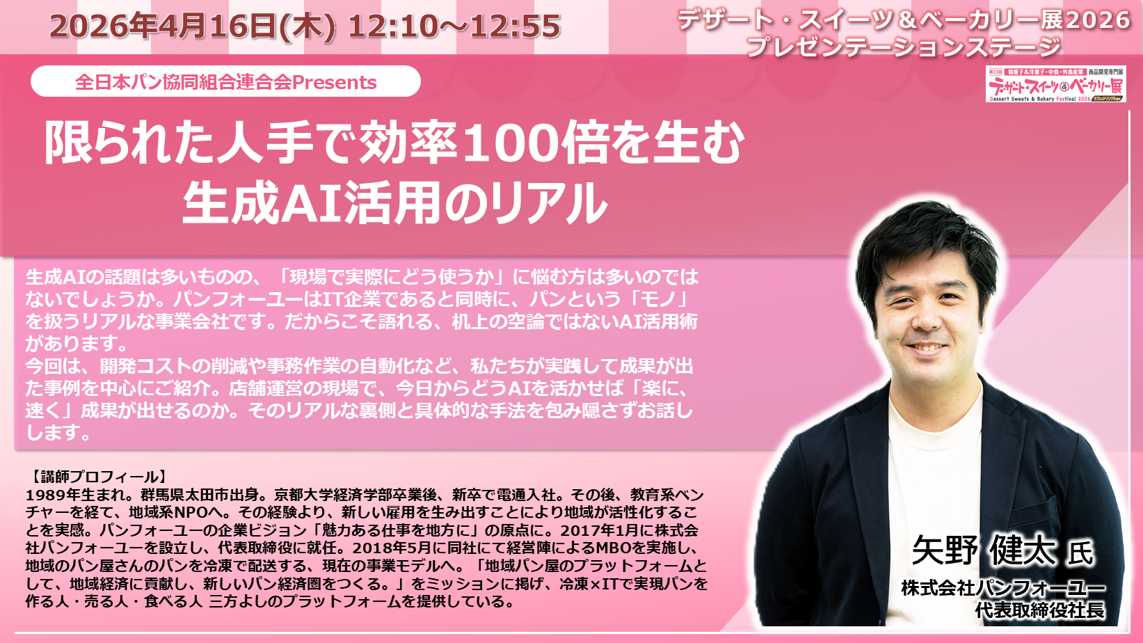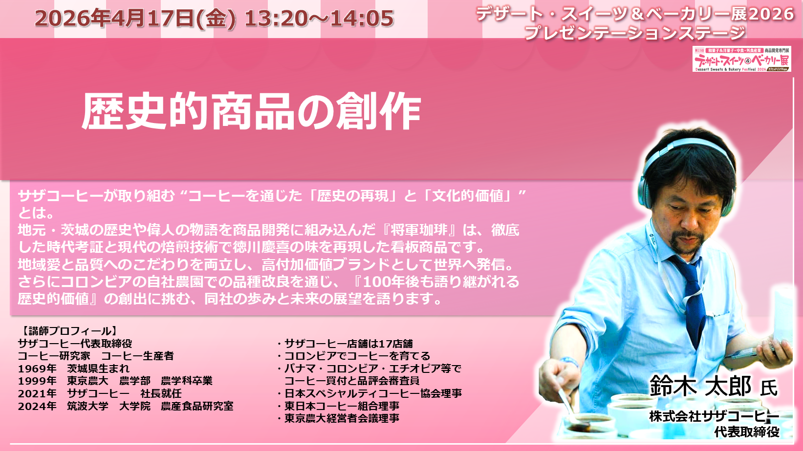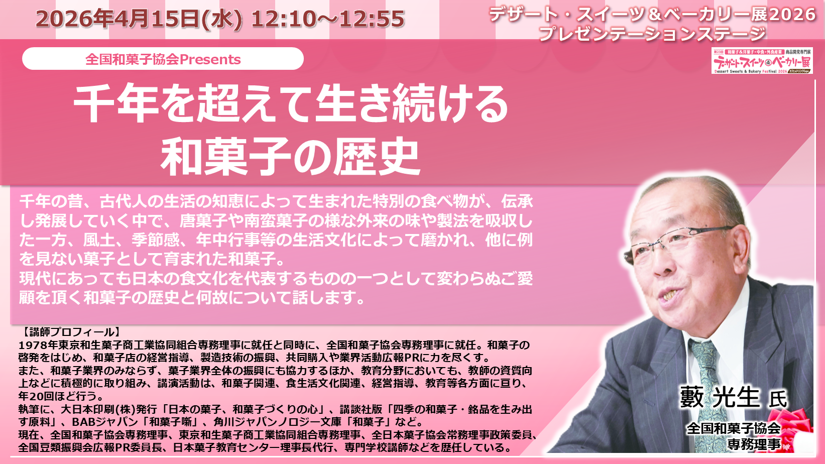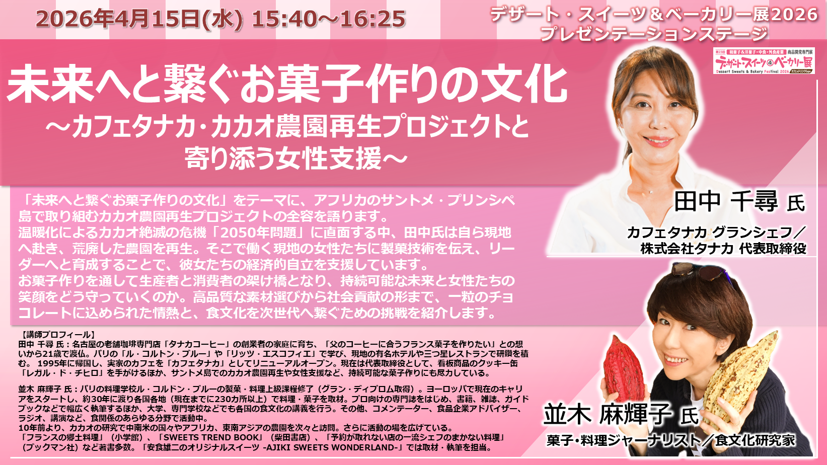◆「デザート・スイーツ&ベーカリー展 プレゼンテーションステージ」の講演内容と講師プロフィールをご紹介いたします◆