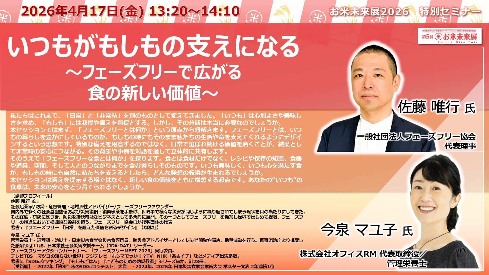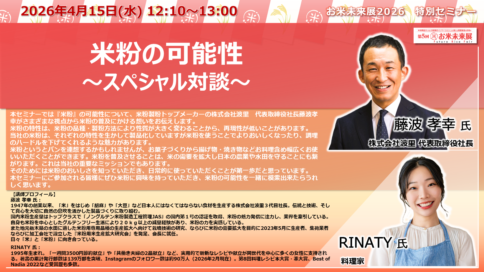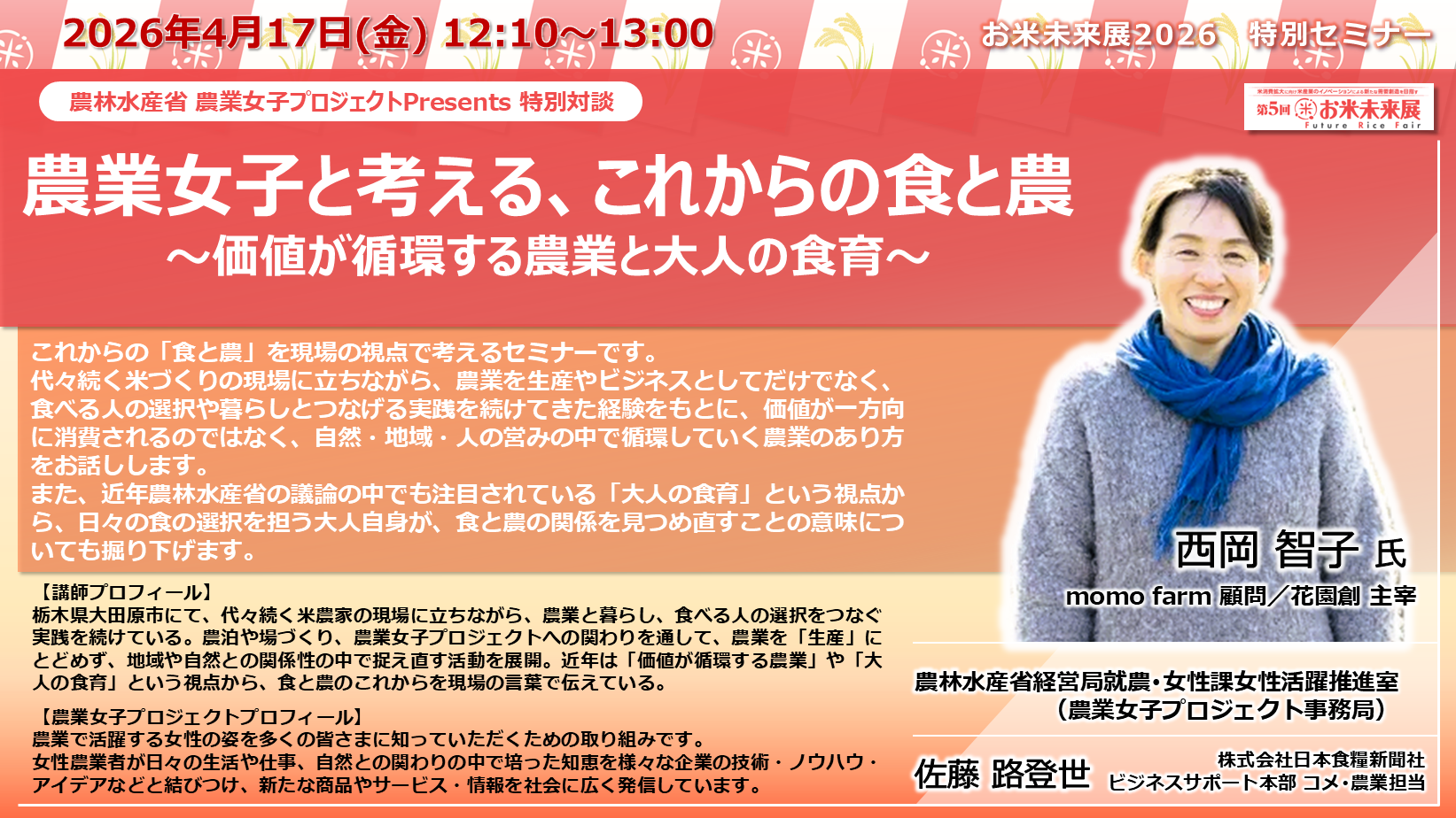 ◆「お米未来展展 特別セミナー」の講演内容と講師プロフィールをご紹介いたします◆