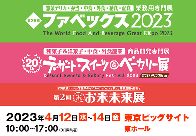 第26回ファベックス2023第20回デザート・スイーツ&ベーカリー展第2回お米未来展2023第11回食品&飲料O...