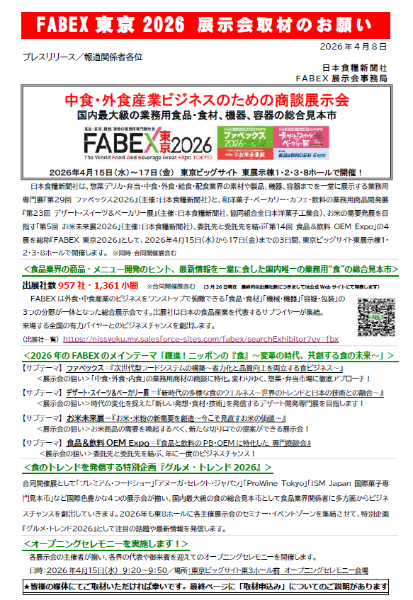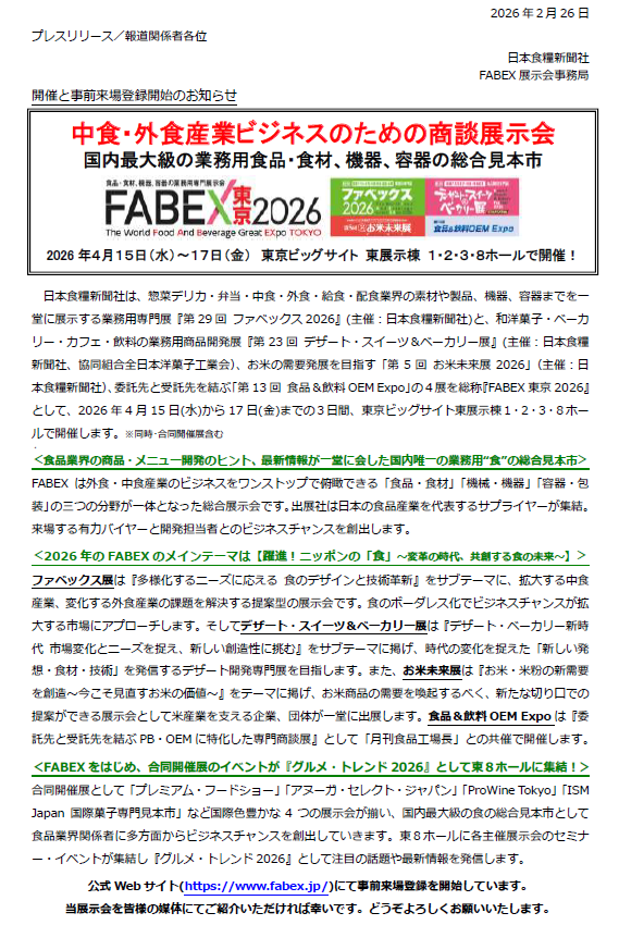 プレスリリース2026年2月号(開催と事前来場登録開始のお知らせ&申込書)です。