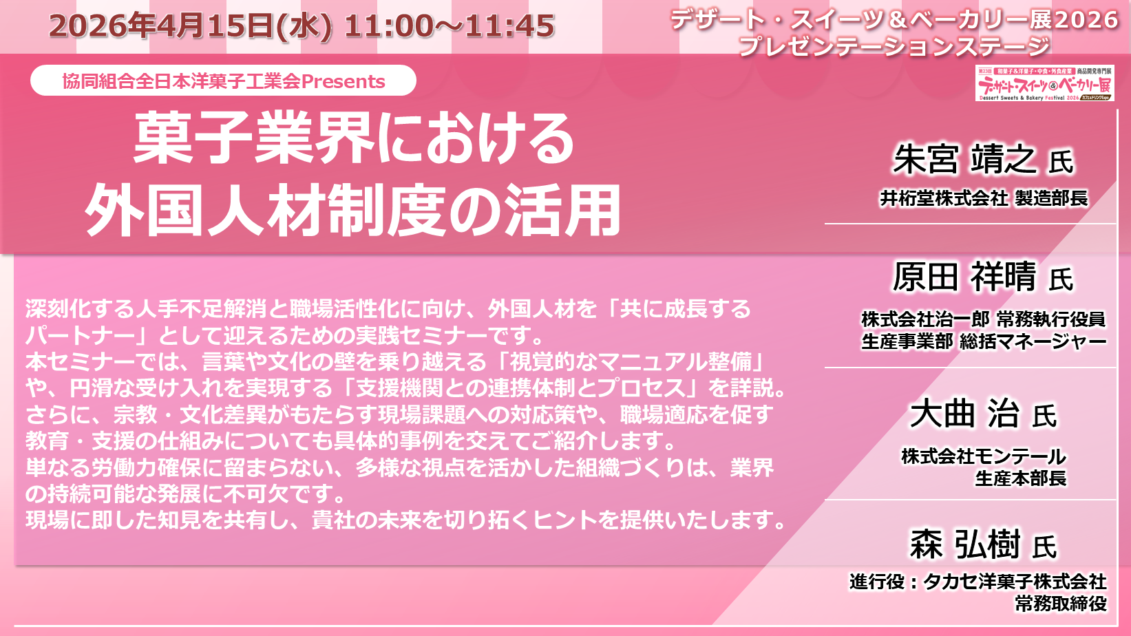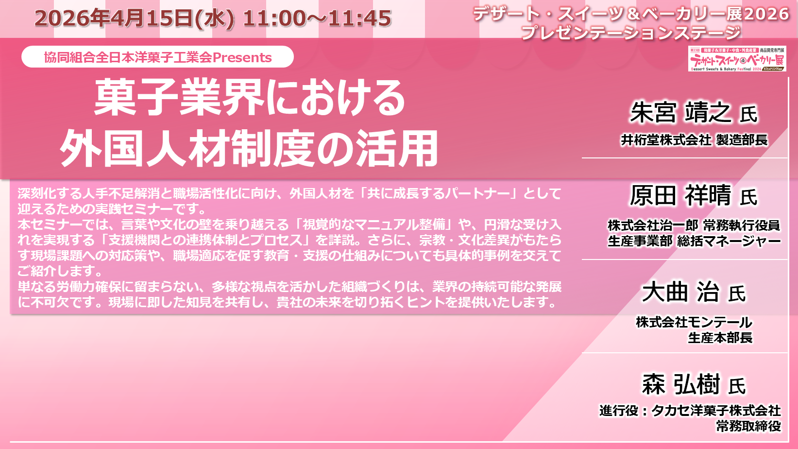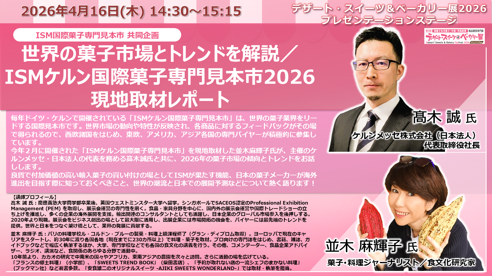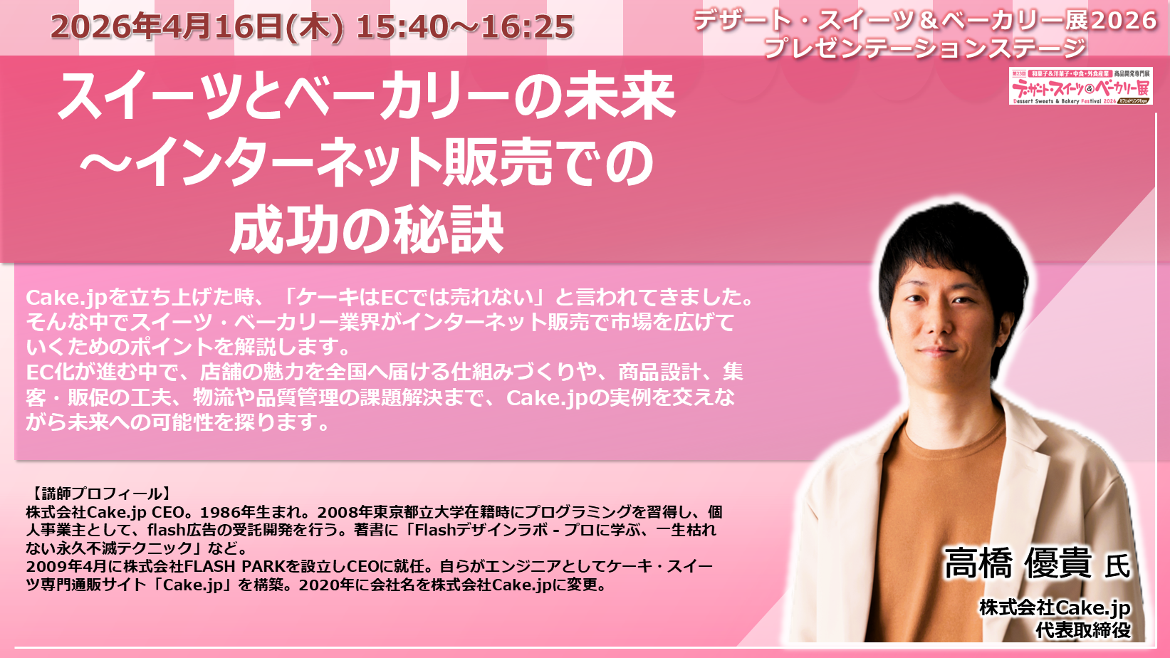 ◆「デザート・スイーツ&ベーカリー展 プレゼンテーションステージ」の講演内容と講師プロフィールをご紹介いたします◆