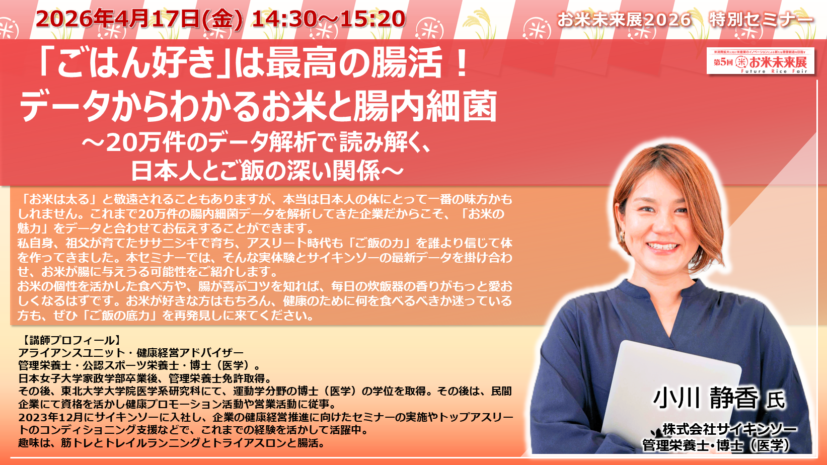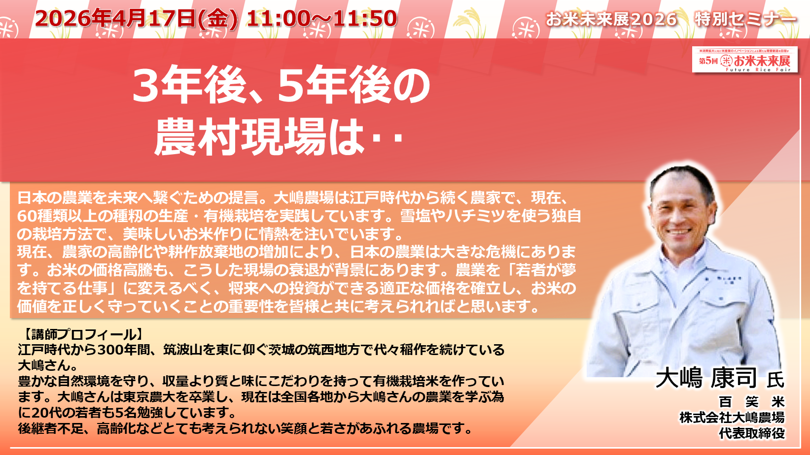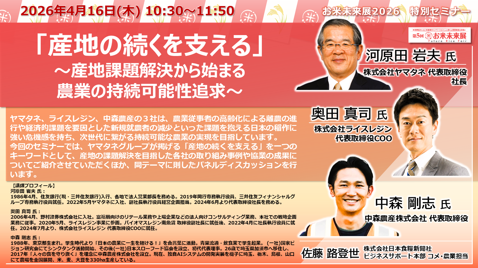 ◆「お米未来展展 特別セミナー」の講演内容と講師プロフィールをご紹介いたします◆