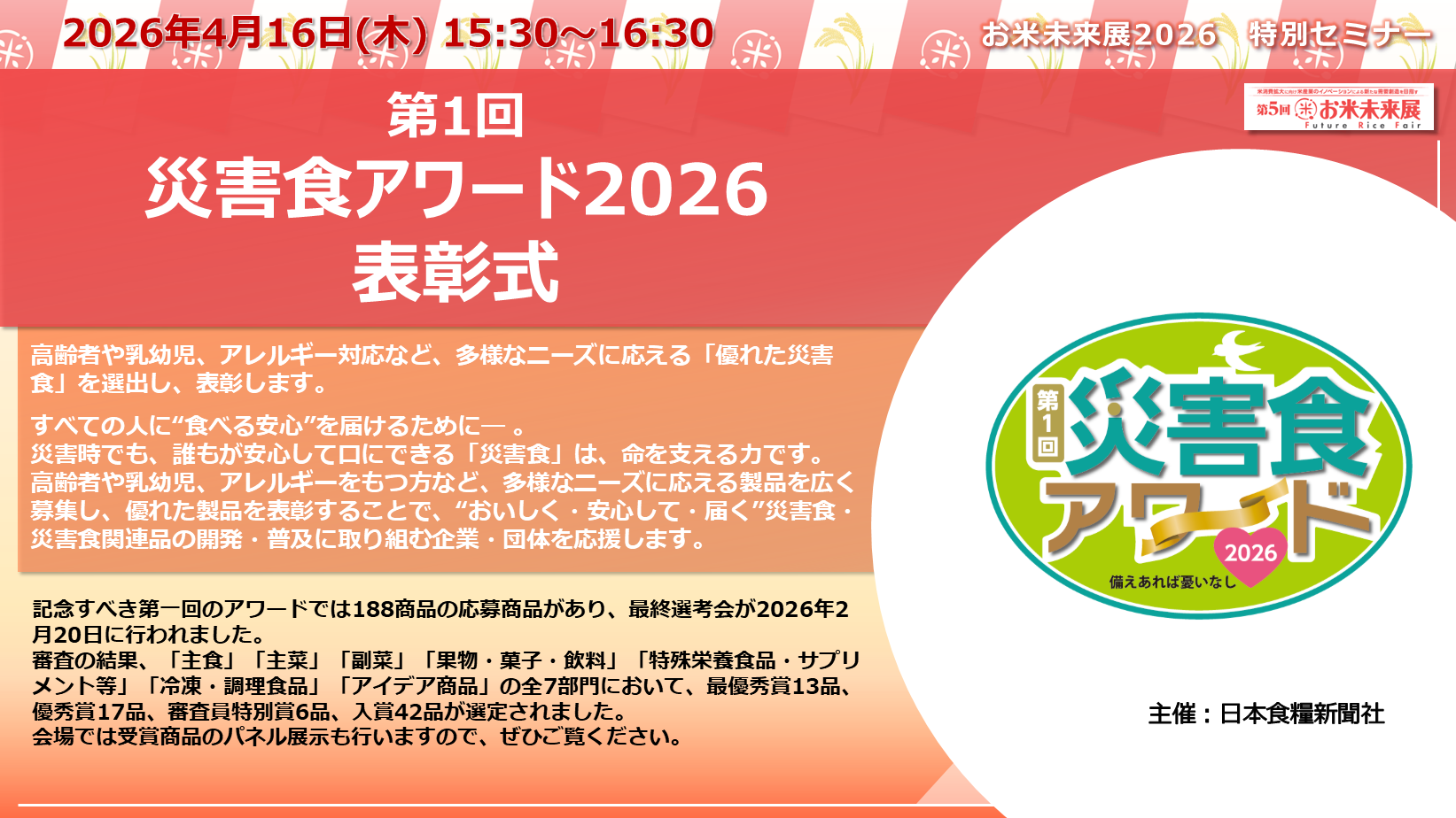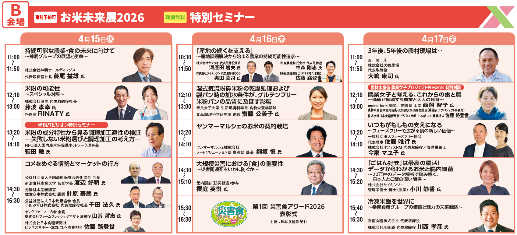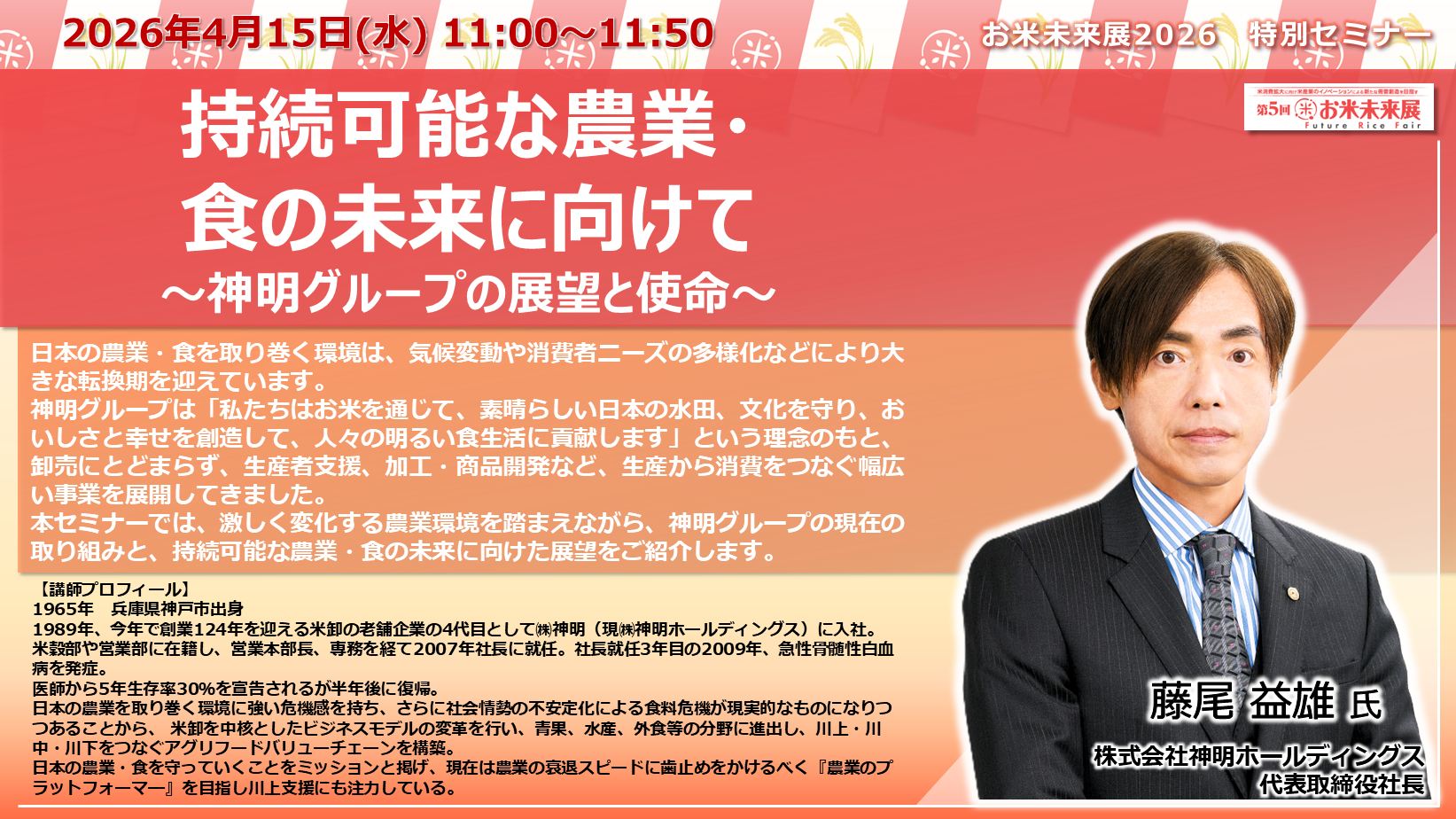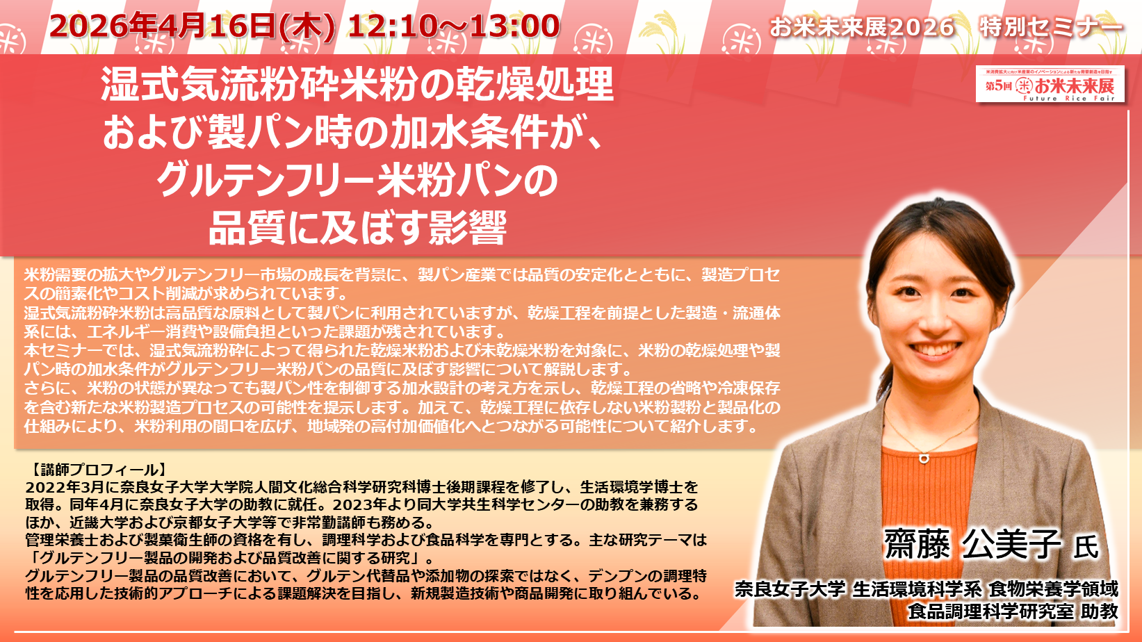 ◆「お米未来展展 特別セミナー」の講演内容と講師プロフィールをご紹介いたします◆